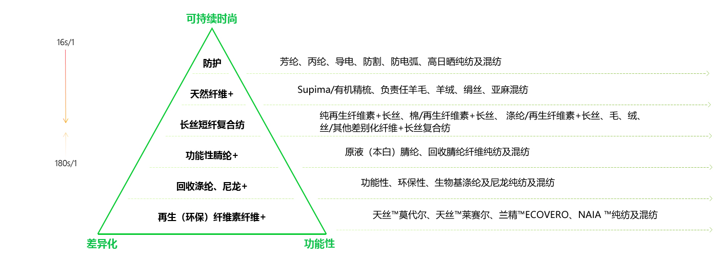 聯潤定義高品質紗線新標準(SBCN YARN),一種好的紗線纖維來源(S端)要以透明、可持續為基礎,紗線既要能滿足(B端)面料視覺、感覺、觸覺價值需要,更要滿足(C端)品牌商兼具美感、富有情感和溫度,功能性強的設計價值需要,更要對生態環境(N端)帶來持續的改善。